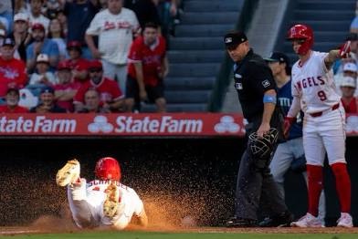 Kevin Newman would represent the game-winning run at second base as the toast runner, with O’Hoppe, Wade and Rengifo due up to bat. The new reliever in the game for Seattle was Casey Legumina, who would try to force this game to an 11th inning. O’Hoppe came up first, looking to be an o’hero again. But he flew out to deep center field, as Rodriguez caught the ball, however that meant Newman could attempt to advance to third base. And that is what he did, as Newman sprinted and slid head-first safely at third. Now, with the game-winning run 90 feet away, a ball hit into the outfield deep enough or well enough could win the game. LaMonte Wade Jr had a chance to win it with his bat. This at-bat was huge, with it starting with a strike in the heart of the plate. Then, on the second pitch, the ball hit the inside corner of the strike zone, but it wasn’t called a strike. Instead it was ruled a ball by home plate umpire Mike Muchlinski, who was a real “class act” in this game. That ball one call would loom large as Wade did well to force the count full and then he walked on the sixth pitch of the at-bat. Now with runners on the corners and Luis Rengifo coming up, a potential squeeze play could be put on to bring Newman home. But a double play was also a possibility, so Rengifo had to be careful. Unfortunately, safety squeeze plays are more rare these days due to them being practiced less and only being able to be executed by a few select players who actually know how to bunt and run fast from third. Rengifo would not put down a bunt for a potential squeeze play and instead swung at the first pitch and fouled it off. He took the next two pitches thrown by Legumina for balls, then he hit a changeup that stayed fair on the left side of the field. Unfortunately, Newman had chosen to go for it and run home when the ball was field by Williamson, who got Newman into a rundown and Newman would be tagged out. Now with runners at first and second with two outs, the Halos needed a clutch hit. And the perfect guy was coming up to try and deliver it.
