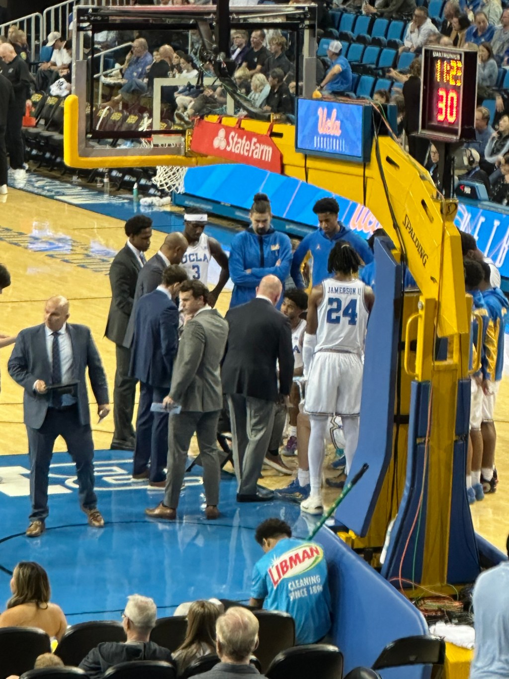 A risky move was made as both Bilodeau and Booker came back in with their four fouls. After a couple of inefficient possessions, Bilodeau made a huge basket that came with a foul and he completed the three-point play. Following a coach’s challenge by the Huskies(their second of the game) that was successful, the game went into its final stretch. A good turnaround basket was made by Dailey to push the Bruins’ lead to seven points with three minutes left. It went up to a game-high nine points on a layup by Dent with over a minute and a half left to play. It seemed that UCLA had this game all wrapped up, but Washington wasn’t going to surrender so easily. A quick dunk by Bryson Tucker occurred and Huskies coach Danny Sprinkle took his team’s first timeout of the half. With the Bruins in the bonus, Washington fouled Perry in the backcourt and he made both free throws. A three-pointer was made by Quimari Peterson on the other end to cut the deficit to six points. The Bruins were forced to call their final timeout of regulation with over a minute left. Bilodeau got fouled and he made the first free throw, but missed the second one. A swift three was made by Peterson on the other end and just like that, the Huskies were only down by four. After another timeout called by Sprinkle, Dent got fouled and he missed the first free throw, but made the second. The lead was only five points when Peterson made a layup with 38 seconds left. With the deficit at three points, Washington could have easily let the next offensive possession for UCLA play out, but instead Hannes Steinbach fouled Perry in the backcourt. Perry took advantage of that mishap by making both free throws, but on the next Huskies possession Yates scored on an offensive rebound and a foul was called on Brandon Williams on the shot. The free throw was made by Yates and Washington was only down by a deuce. After the inbounds pass, Dailey got fouled and he made both free throws on the other end. A swift layup by Yates led to Sprinkle calling his team’s final timeout. Perry got fouled again and he made both free throws to re-increase the lead to four points and on the last-chance possession for the Huskies, Peterson missed a three-pointer and the ball went out of bounds with possession favoring the Bruins. It was game over.